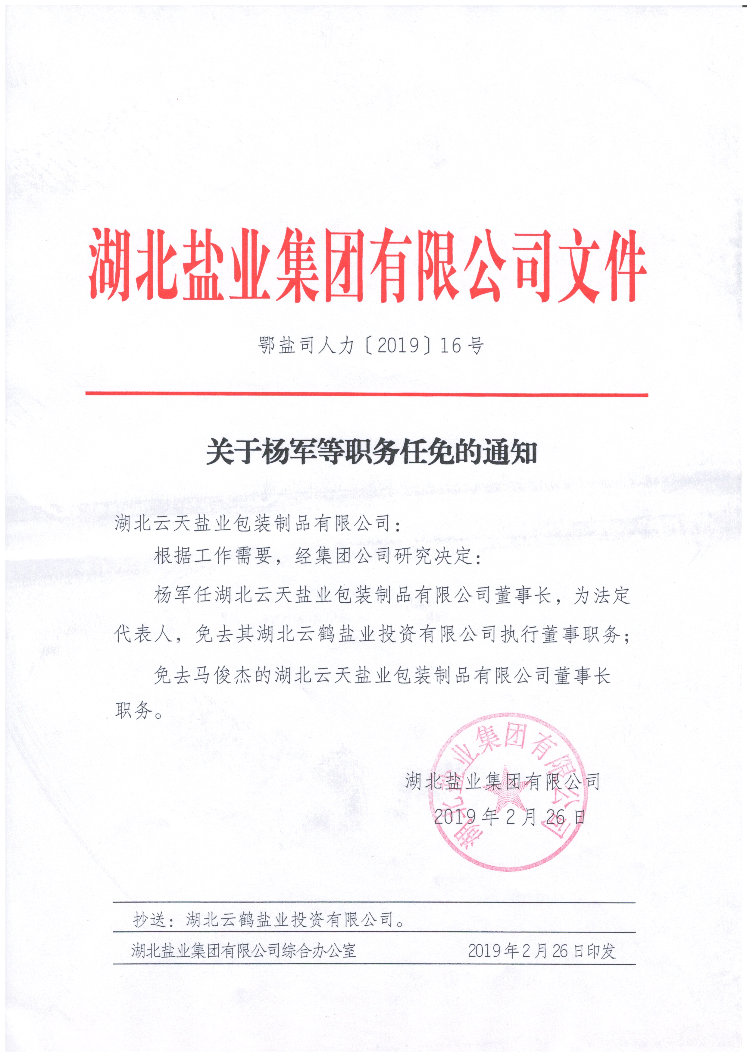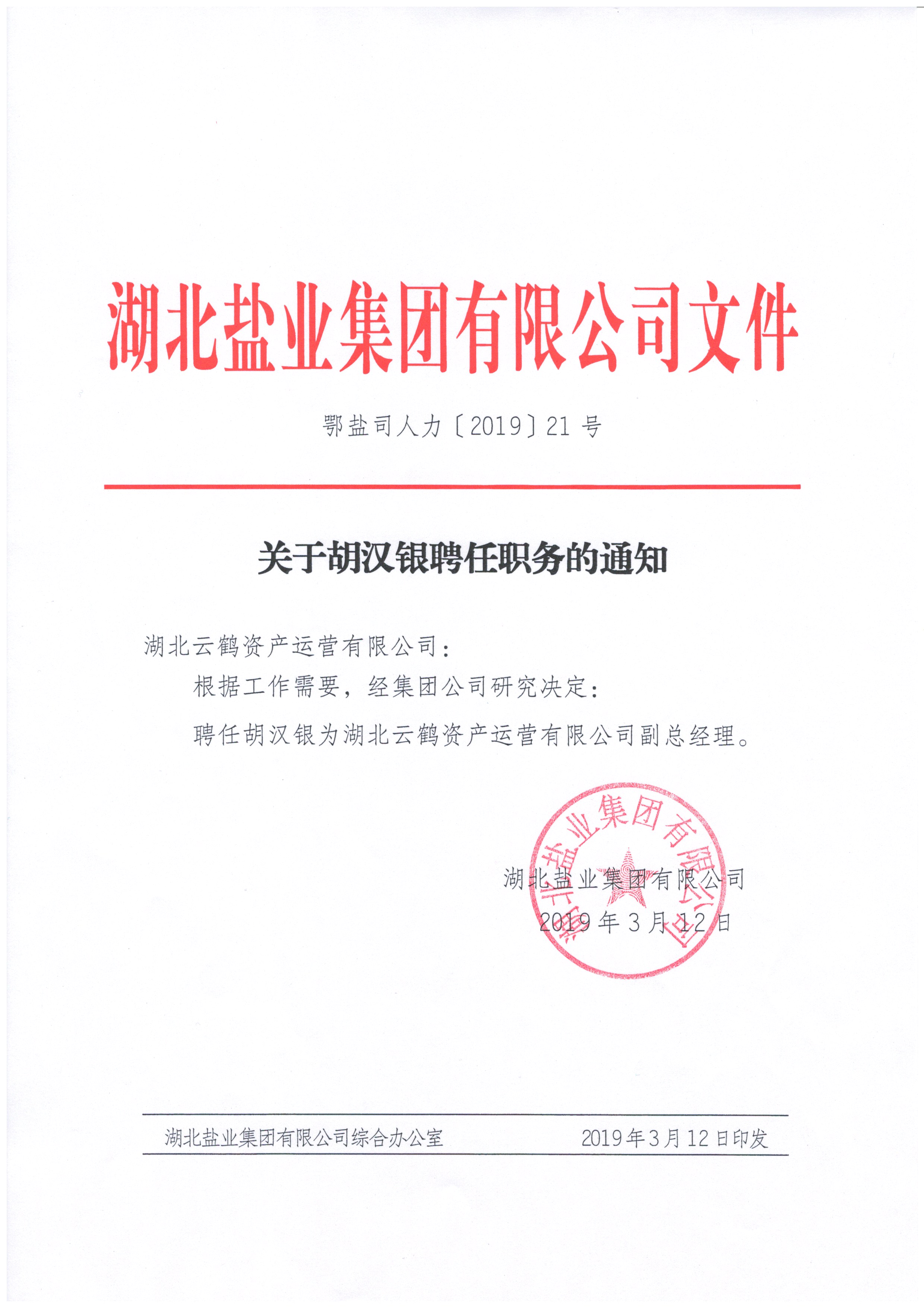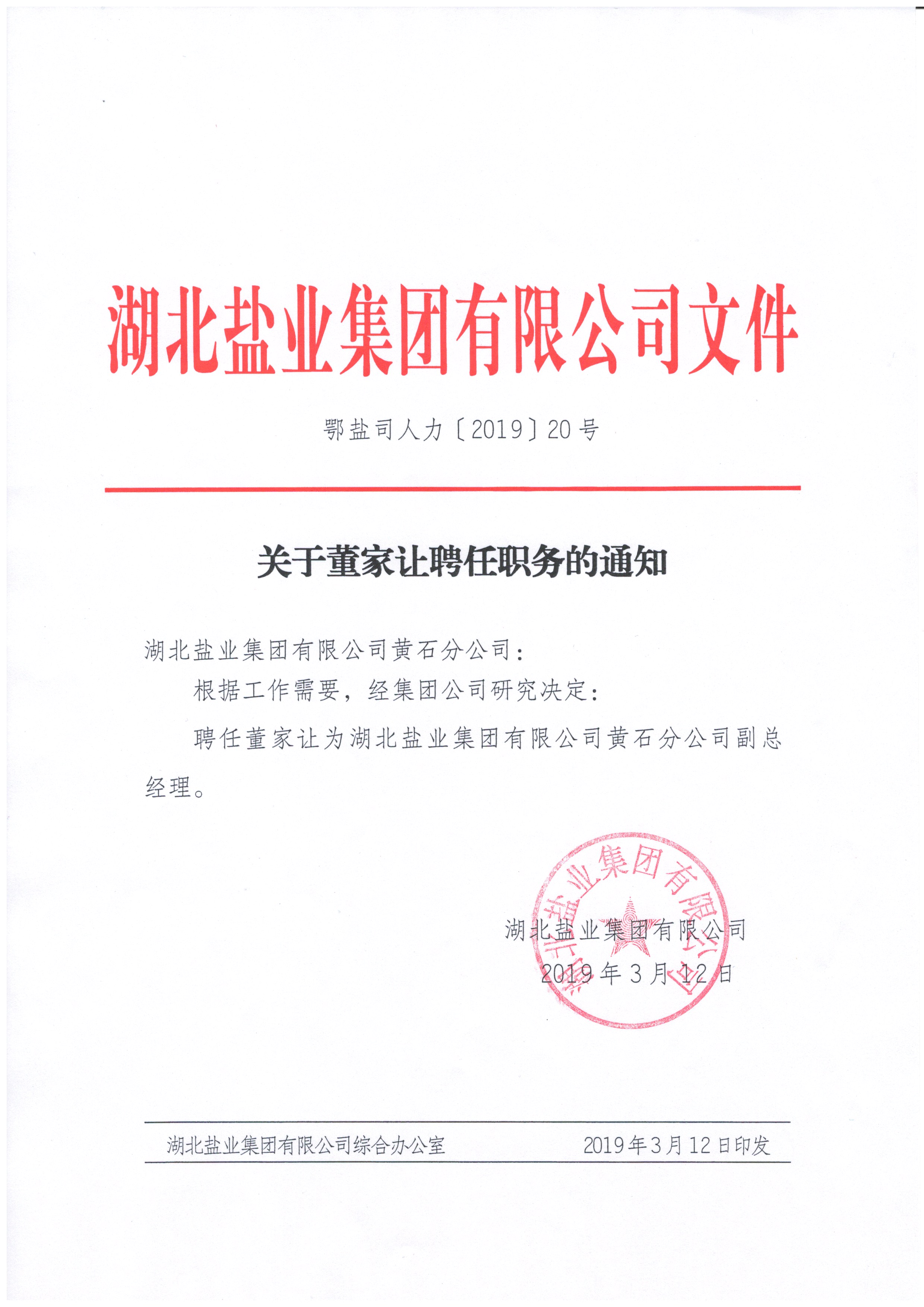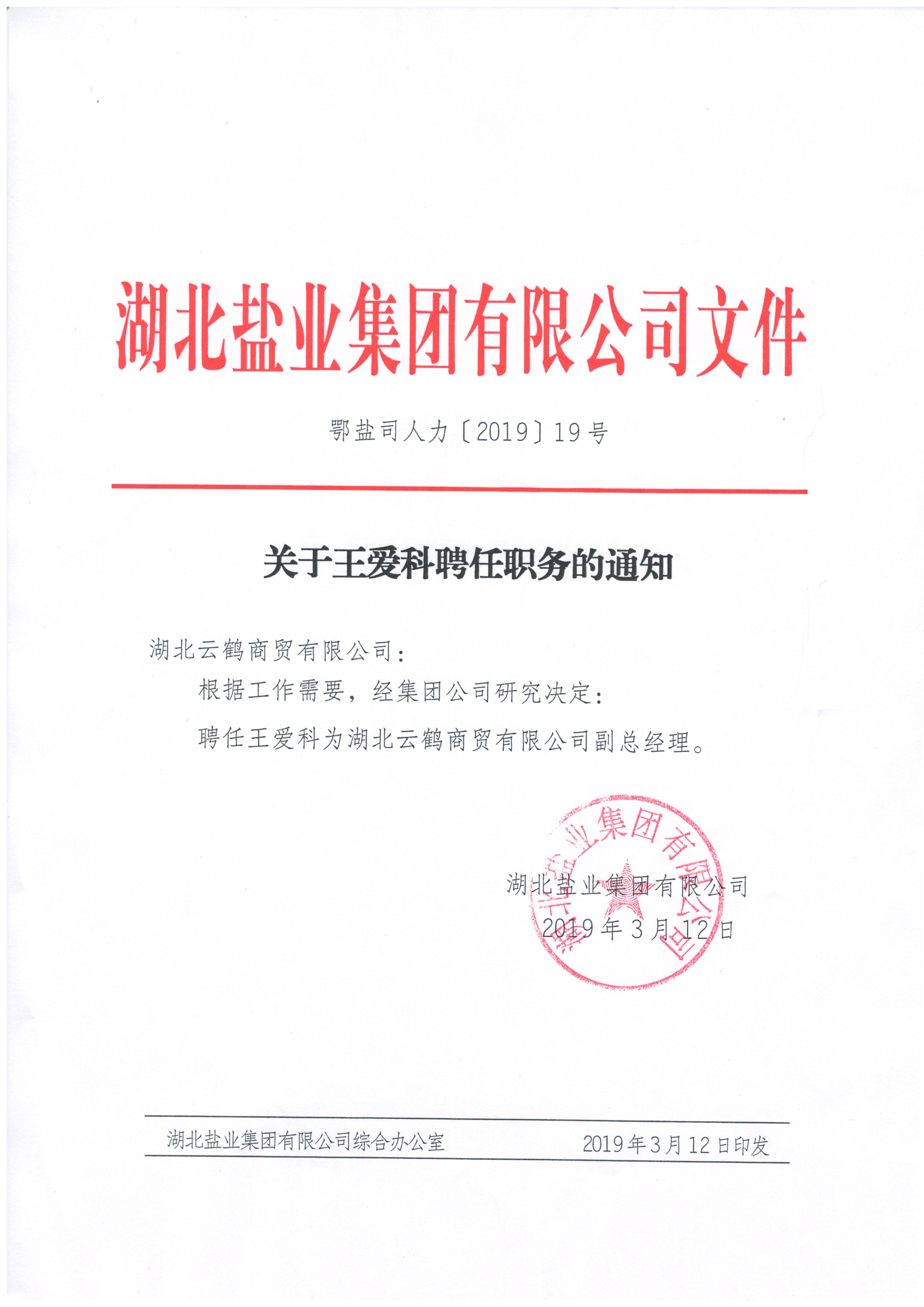 分子公司领导干部调整通知