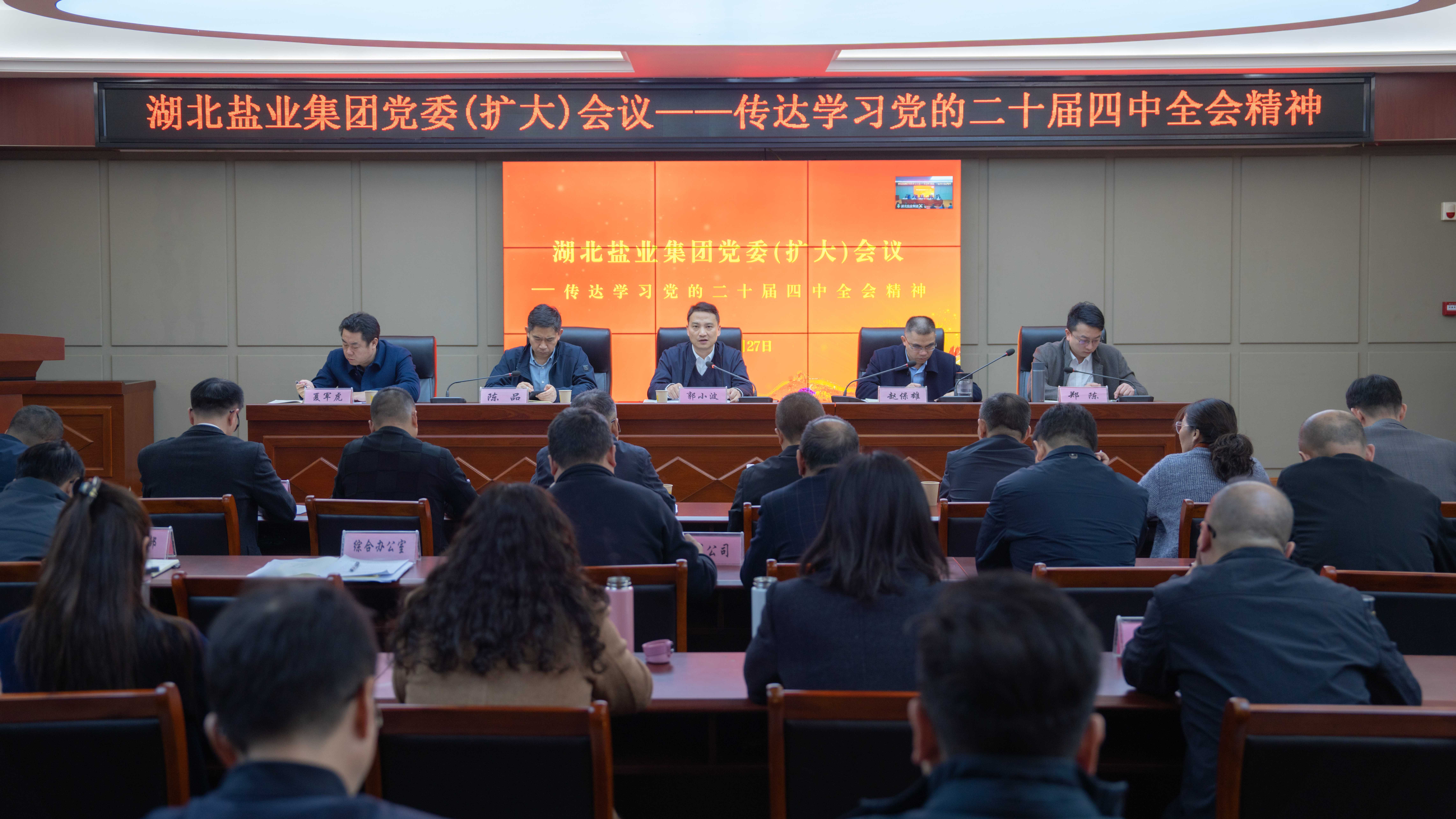 会议强调,学习好、宣传好、贯彻好党的二十届四中全会精神,是当前和今后一个时期湖北盐业集团上下的重大政治任务。集团各级党组织和全体党员干部职工要统一思想认识、汇聚奋进力量,确保全会各项决策部署不折不扣落实到位。